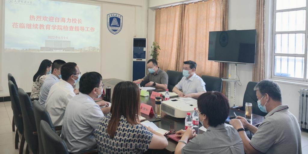 白海力在听取汇报之后,对继续教育学院在第三聘期克服疫情困难圆满完成聘期业绩考核,推动学院各项事业持续稳定发展给予了肯定,并对学院未来发展提出了新的要求:一是要深刻认识到继续教育是我国高等教育体系的重要组成部分。必须全面贯彻党的教育方针,聚焦办好人民满意的教育,满足人民对继续教育的需求,加快构建服务全民终身学习的教育体系和培训课程,积极服务于天津市学习型城市建设。二是要加强与西青区的终身学习区校联合体建设,在拓展办学渠道、扩大办学规模的同时,提升办学质量,彰显城大特色。三是要以质量为导向,建立健全高等学历继续教育质量保证体系,牢固树立安全办学理念,加强教育教学全过程管理和监督,消除办学风险隐患,确保学校继续教育高质量稳步发展。四是要加强课程思政建设,严格落实意识形态工作责任制,加强对任课教师和学生的教育、管理和引导,精心组织,精细管理,宽柔相济,圆满完成教育教学工作任务,推动学院各项事业高质量发展。