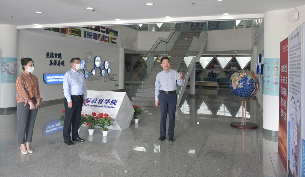 白海力在国际教育学院领导班子的陪同下参观了古琴弦歌基地、红色教育阵地、国际众创空间等,与师生亲切交谈。期间,国际教育学院院长张海围绕中外合作办学、来华留学教育、国际交流合作等介绍了beat365国际教育发展情况,学院直属党支部书记边菁华讲解了“奋斗百年路 启航新征程—中国共产党全国代表大会图片展”,介绍了学院在党史学习教育方面“走新”又“走心”的特色做法。