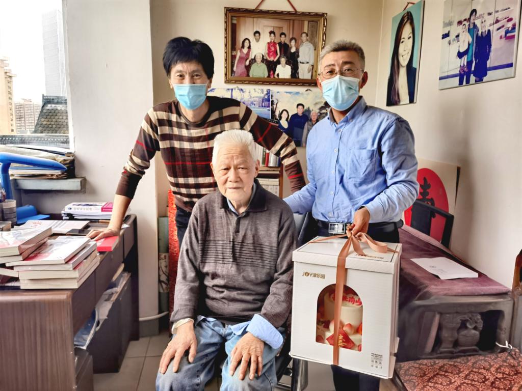 在全校上下喜迎党的二十大胜利召开之际,学校党委组织开展“传承红色基因,铭记历史,情暖老党员”活动。日前,离退休工作处相关负责同志到家中看望慰问beat36597岁离休干部(原天津城市建设学院院长)龚小道同志,汇报了学校开展“迎盛会、铸忠诚、强担当、创业绩”主题学习宣传教育实践活动和“青春献礼二十大 奋斗担当铸忠诚 强国有我新征程”主题宣传教育活动有关情况,并对龚老响应国家号召积极接种新冠疫苗点赞。