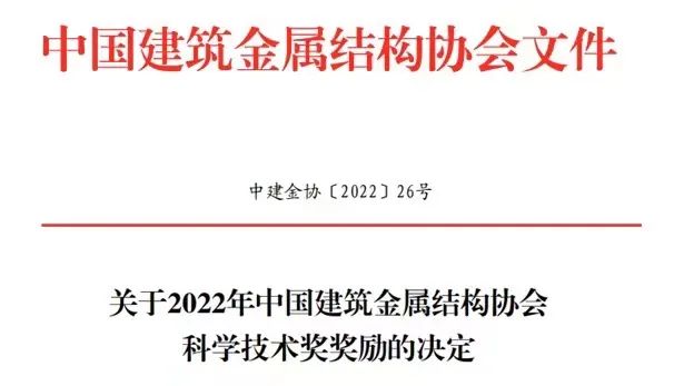 “中国建筑金属结构协会科学技术奖”是由中国建筑金属结构协会设立的建筑钢结构行业科学技术奖,获奖项目经评审委员会专家听取汇报、质询、讨论、现场打分确定,为促进科技成果转化,提升企业技术创新能力,实现行业高质量发展起到了巨大的推动作用。