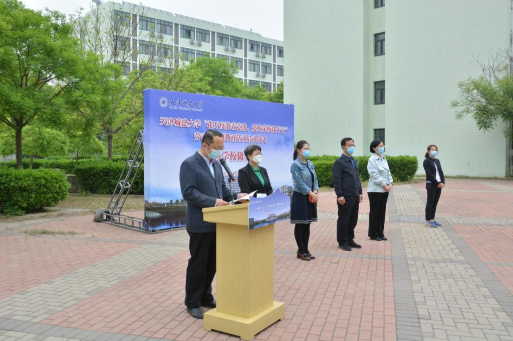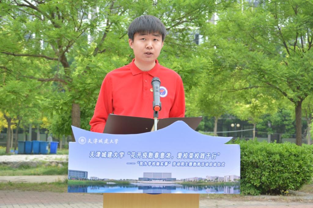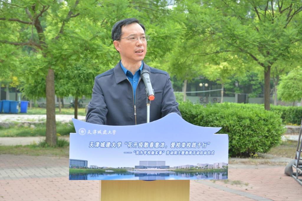 为全面贯彻落实习近平总书记参加首都义务植树活动时作出的有关劳动教育重要指示精神,贯彻落实党中央、教育部、天津市和学校关于劳动教育各项部署以及“青春献礼二十大 奋斗担当铸忠诚 强国有我新征程”主题宣传教育活动要求,充分发挥以劳树德、以劳增智、以劳强体和以劳育美的综合育人实效,促进学生全面发展。beat365于4月25日举行“花开疫散春意浓,爱校荣校践于行”——“我为学校做实事”劳动周主题教育活动启动仪式。校党委副书记王罡、副校长陈志华出席,党委学工部、教务处、后勤处、校团委相关负责人、各学院学生工作负责人、学院辅导员及部分学生代表参加了此次活动。