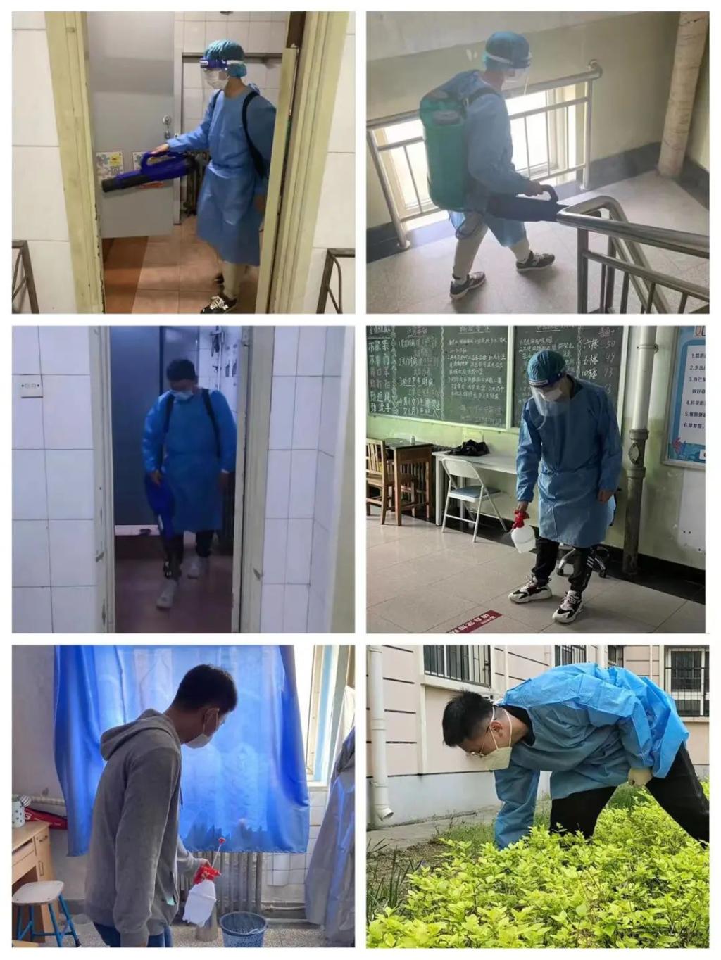 支部成员使用消杀喷雾器、酒精喷壶,把思齐斋每间宿舍以及楼梯、走廊、卫生间等公共区域进行了全面消杀,同时针对公寓楼前及周边绿地进行了清洁整治,清理垃圾杂物,清扫园区道路,有效落实学校疫情防控工作要求。