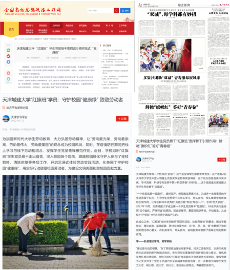 2021年10月,学校成立第一期学生党员骨干“红旗班”。成立一年来,全体学员在校园内外做到了“周周有活动,处处亮身份”,戴党徽、着班服、记笔记、写心得、做发言、受监督,已经成为身份习惯,用实际行动践行了“淬炼党性守初心 奋楫笃行担使命”的铮铮誓言。第一期学生党员骨干“红旗班”学员在班级“系统化+阶梯式”的培养锻炼中,迅速成长为有信仰、有悟性的学生党员排头兵,以《“红旗班”示范引领下的学生党员“沉浸式”培养创新与实践研究》获批2023年度天津市高校思想政治工作精品项目立项,相关事迹被高校思政网、学习强国、天津教育报等重要媒体报道,增强了学校学生党建工作的影响力。