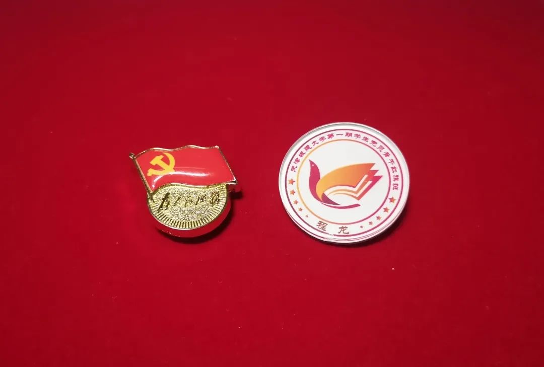 沙荔、王健以及各学院学生工作负责人为第一期“红旗班”学员代表佩戴专属定制纪念徽章。