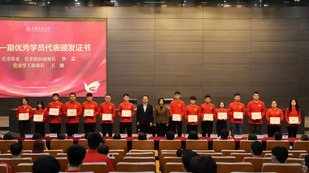 沙荔、王健为第一期学生党员骨干“红旗班”优秀学员颁发证书。