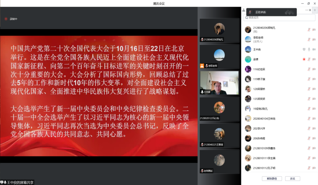 11月19日下午,副校长王中良登录云端课堂,结合党的二十大精神,围绕“推动构建人类命运共同体”主题,为国际工程学院2021级土木合、环境合、园林合专业学生讲授“习近平新时代中国特色社会主义思想概论”课程,给同学们带来一堂具有理论深度和时代温度的思政课。