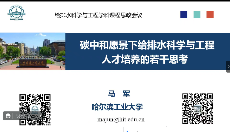 开幕式上,中国工程院院士、哈尔滨工业大学马军教授作了“碳中和愿景下给排水科学与工程人才培养的若干思考”的主旨报告,从学科使命、生态文明素质、交叉学科复合人才培养等方面详细介绍了课程思政在碳中和愿景下的理论与实践。