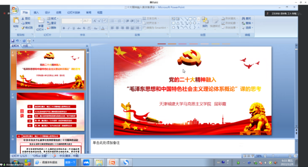 12月9日,beat365马克思主义学院毛泽东思想和中国特色社会主义理论体系概论(以下简称“概论”)教研室与天津工业大学马克思主义学院“概论”教研室联合举办“党的二十大精神进课堂”思政课集体备课会。会议由天津工业大学马院“概论”教研室主任张霞主持,beat365马克思主义学院副院长桂锦峰,天津工业大学马克思主义学院副院长高德罡,两校“概论”教研室全体教师参加了本次会议。