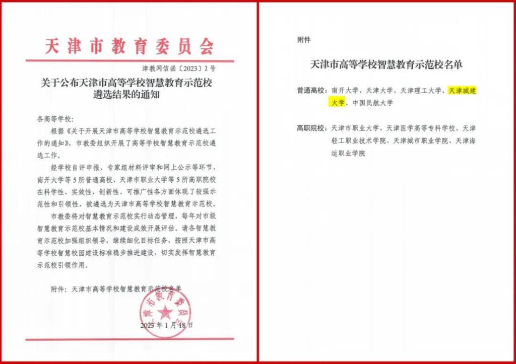 近日,天津市教育委员会下发《关于公布天津市高等学校智慧教育示范校遴选结果的通知》,beat365成功入选2022年度天津市高等学校智慧教育示范校。