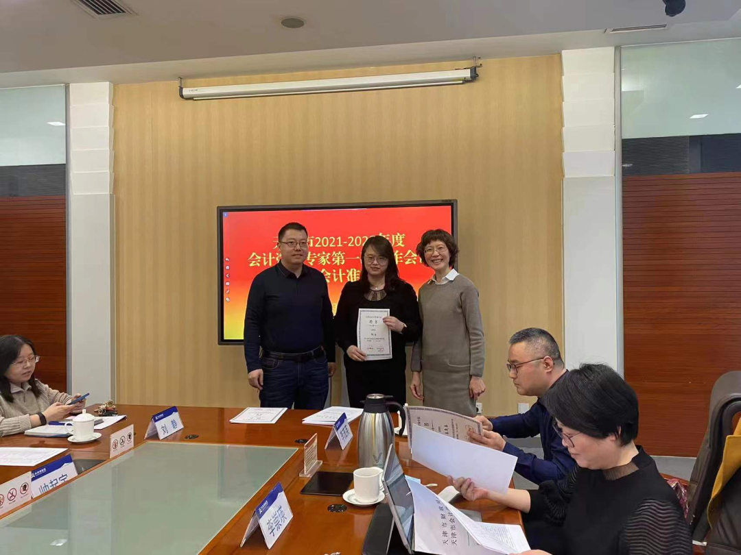 会上,天津市财政局相关领导介绍了本期天津市会计咨询专家的选拔分组情况、委员会工作机制以及专家职责,并为各位专家颁发聘书。陈洁教授作为受聘专家出席会议并发言,她表示将从所处领域出发,积极在制度建设、专家咨询、建言献策、成果转化等方面尽己所能做出应有的贡献。各位咨询专家共同学习了《天津市会计咨询专家议事规则》,就自身研究方向提出了相关行业的会计问题,并表达了要认真履职、互相学习的意愿与态度。