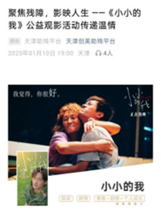 天津创美助残公益组织在河西区万象城影院举办《小小的我》公益观影活动,为残障人士提供暖心观影服务,薪火班学员作为志愿者全程参与,用行动传递冬日温暖。活动当天,李泽一、姚鸣哲承担了影院门口签到的工作,并协助残障人士顺利入场。此次观影人员来自不同的残障群体,包括失语者、听障者和脑性瘫痪者等。初见他们时,“小火苗”们难免有些拘谨,但很快他们发现,这些残障朋友与普通观众并无二致--他们热情、开朗,积极表达着自己的想法和诉求。学员们也迅速放松下来,以更加自然、亲切的态度投入到工作中,与残障朋友们展开温暖的互动。