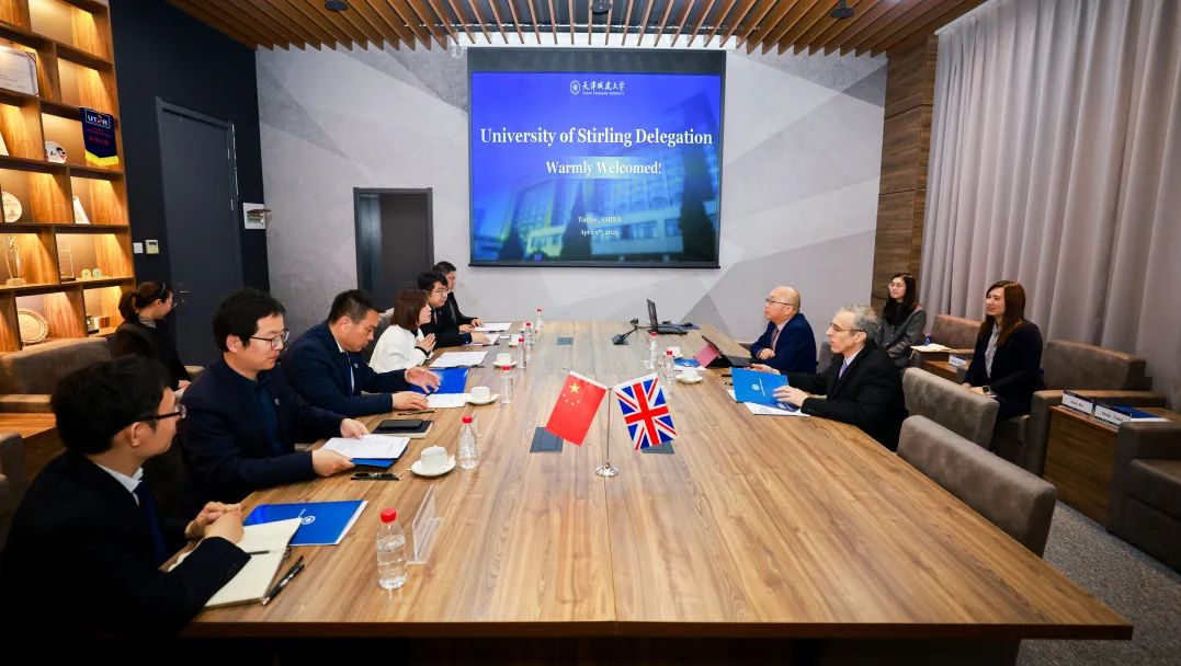 4月9日,英国斯特灵大学代表团来beat365交流访问,校长王中良亲切会见来宾,国际交流处(港澳台事务办公室)、经济与管理学院、城市艺术学院、外国语学院、国际教育学院、体育部相关负责人参加会谈。