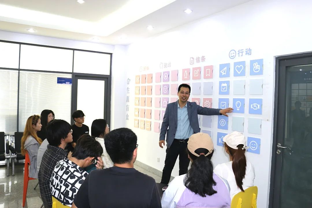 “筑心”生涯工作室设有综合服务区、个体咨询区、职业探索区三个功能区,从职业发展探索、专业技能提升、综合能力培养、职业心理发展等维度,持续为学生提供个体决策咨询、生涯团体辅导、生涯职业测评等就业指导服务。“筑心” 生涯工作室成为学生探索职业方向的核心阵地,开启充满未知与惊喜的生涯探索之旅。职业规划师通过使用价值观三角、生涯咨询表单、霍兰德职业兴趣测评等工具,从职业兴趣、个人能力、价值取向等维度,与学生进行深度交流,为其量身打造个性化职业规划方案。职业探索区配备的“生涯盲盒”趣味互动教具,让学生沉浸式体验真实职业工作场景,帮助其直观了解不同职业的工作内容、技能要求和发展前景,使职业探索摆脱枯燥,充满趣味与惊喜。