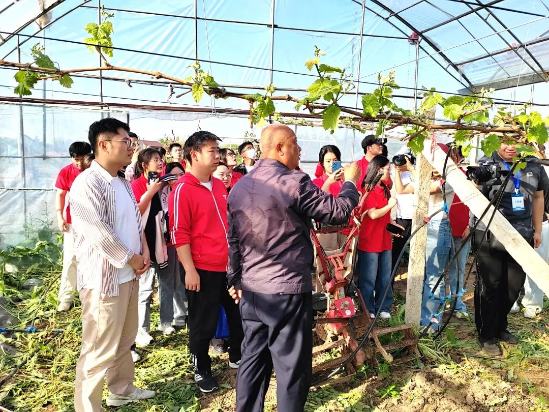 在山水兰韵生态庄园,杨长庚带领学生们进一步了解庄园的规划,深入垂珠堡葡萄种植园实地观察,了解葡萄生长与养护的知识,共同为柒仙女葡萄打响知名度出谋划策,同学们也积极建言献策,助其进一步提升特色农产品的市场影响力和竞争力。