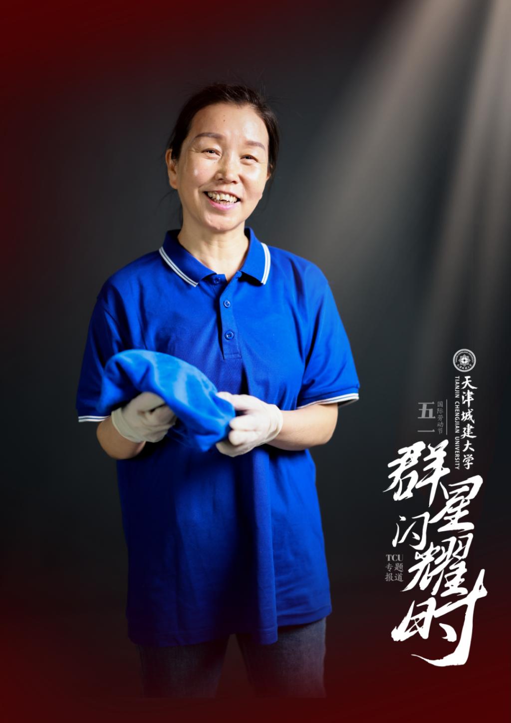 她严查楼道隐患、窗台积尘,随身笔记本密录千条需求,从灯泡维修到胃痛送粥,琐碎皆成大事。军训时为新生缝补裂裤,针脚细密如母爱;深夜冒污抢险,双手泡白仍安抚学生。以反复的叮嘱织就温暖,用日复一日的巡查筑起安全港湾。八载春秋,将冰冷楼宇化为温馨家园,以“公寓无小事”的信念,在拖把与水桶间书写守护三千青春的“妈妈式”浪漫。