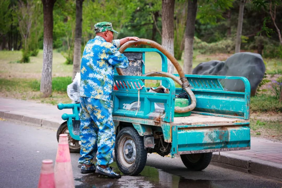 翻开他床头那摞泛着卷边的工作日志,工整的字迹记录着四季更迭。"看到学生们踩着干净的路去上课,心里就踏实。"他总笑着说。在师生眼中,他是随叫随到的"万能苗"。无论是暴雨后的淤泥堆积,还是中心湖突发的管道危机,只要一个电话,他总能带着工具第一时间赶到。2023年那个闷热的夏夜,正是他凭借敏锐的嗅觉发现湖底堵塞,连夜疏通才避免了一场生态危机。食堂阿姨悄悄多加的一勺热菜,学生们弯腰帮忙拾起垃圾的瞬间,都让他觉得,这份在黎明与黄昏间穿梭的工作,原来藏着最暖的人间烟火。