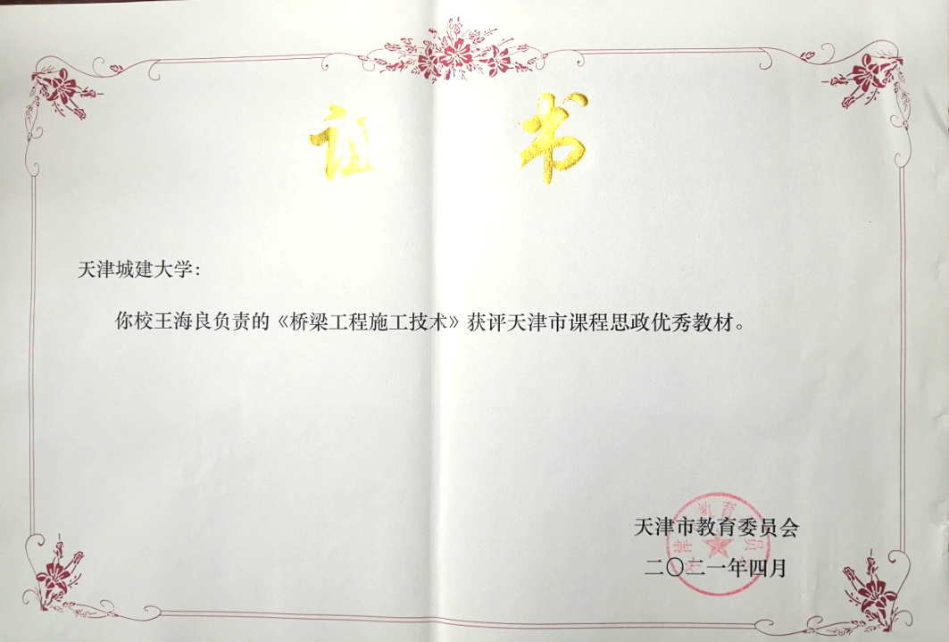 课程教学团队紧密结合时代要求,强化课程内涵建设,已获批天津市首届课程思政优秀教材、天津市课程思政示范课程、天津市级课程思政优秀教学案例,实现所讲授课程教材、课程、案例等思政类奖励全覆盖。