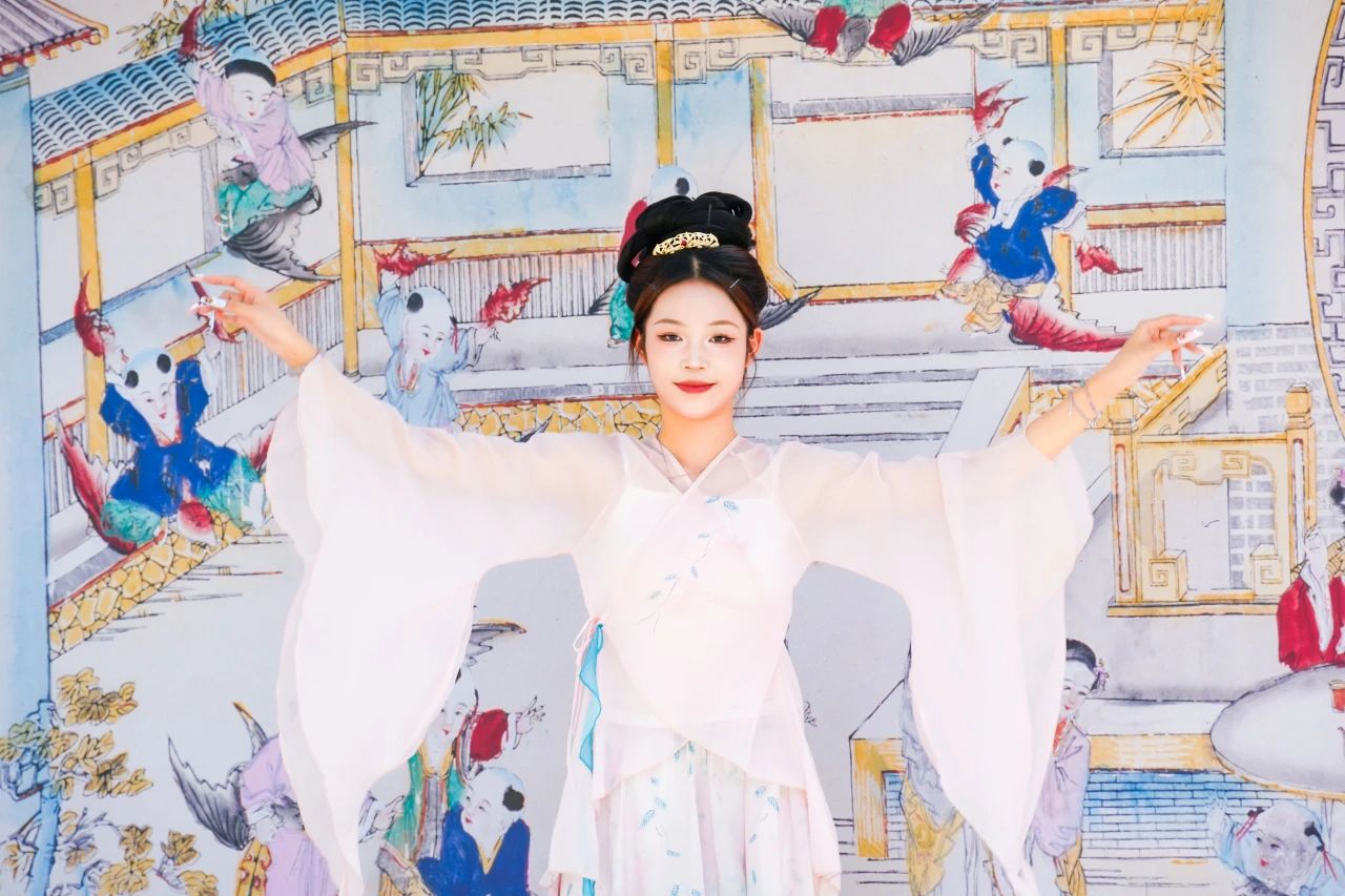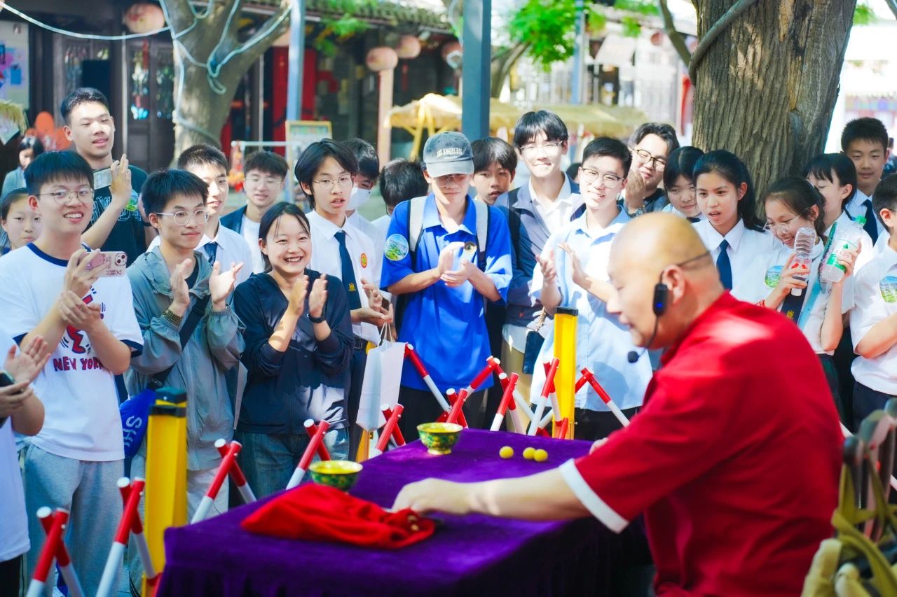 在深入体验古镇历史文化与非遗技艺之后,为进一步丰富实践教学内涵,西青区还为大中小学师生们精心安排了一系列充满活力的民俗表演。在古镇的茶苑舞台、半月台、戏台及其他特色点位,师生们近距离欣赏了包括打花棍与转伞顶技、三仙归洞、罗圈献彩等在内的精彩传统曲艺节目,以及多场融合了传统元素的舞蹈演绎。这些活态的文化展演,不仅让师生们沉浸式感受了天津传统民俗的独特魅力,更生动诠释了“人民城市”中人民群众丰富多彩的精神文化生活,为此次“大思政课”增添了浓墨重彩的一笔。
