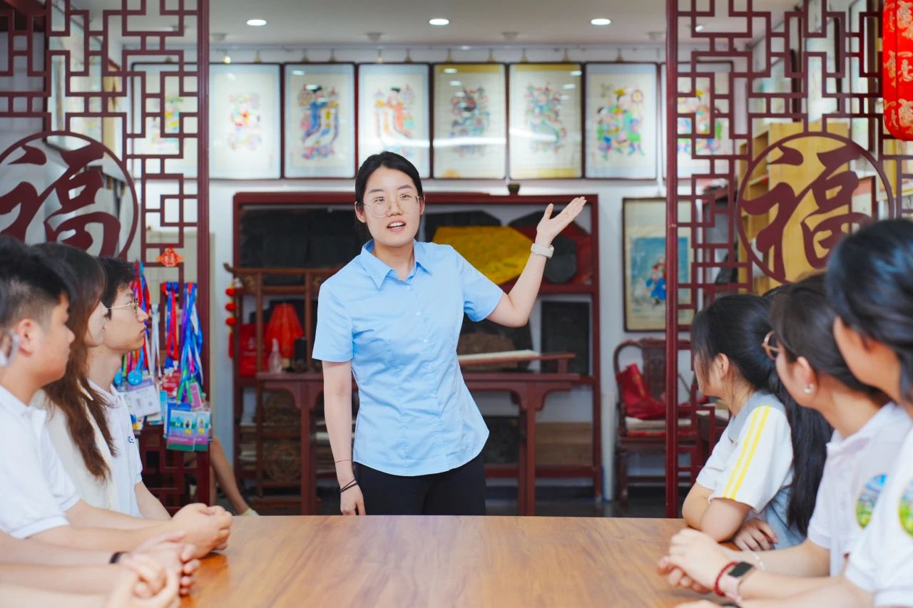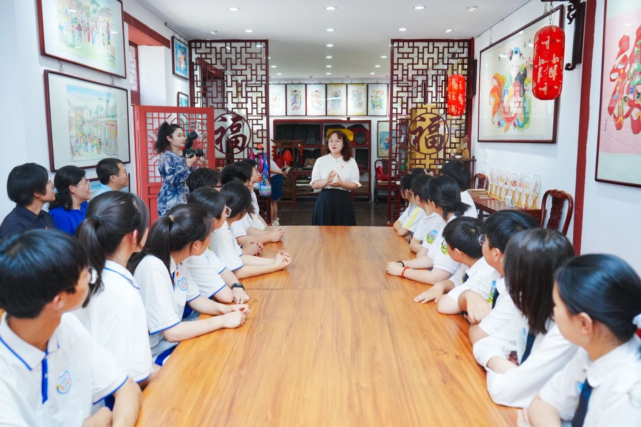 在杨柳青民俗文化馆,马克思主义学院教师以杨柳青年画发展为主线,带领学生们穿越古镇千年历史。从“运河通航”的繁盛到“非遗传承”的坚守,师生们在民俗文化、大院文化、年画文化等多元符号中,共同探寻其中蕴含的“人民智慧”与“城市文脉”。天津一中滨海学校学生深有感触地说:“通过老师的讲解和眼前的实物,我真切感受到了杨柳青深厚的文化底蕴,这正是我们城市生生不息的根脉所在。”
