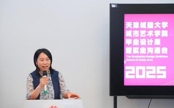 教务处处长赵国敏在致辞中表示,毕业设计展不仅是一场艺术盛宴,更是展示学院市级一流专业、应用型专业等建设效果的生动答卷。在国家大力发展新质生产力的战略背景下,经济社会发展特别是现代化产业体系对高素质应用型人才培养提出了新的要求,城市艺术学院持续做好教学改革创新、不断优化学科专业特色,通过举办这场毕业设计展暨就业沟通会,把学生的毕业设计融入企业的实际需求中去,为毕业生与用人单位搭建一个面对面了解、沟通的平台,积极推动就业落实。