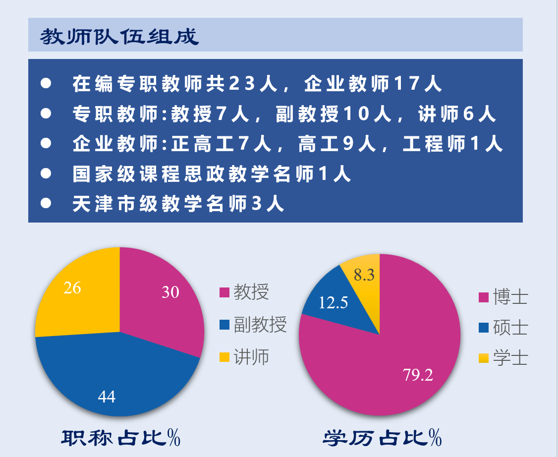 本专业拥有建筑固体废弃物资源化利用国家地方联合工程研究中心、教育部吹填造陆与滨海软土工程技术工程研究中心、天津市软土特性与工程环境重点实验室、天津市滨海软土技术工程中心等学科平台。获批了国家级虚拟仿真一流课程“地下结构抗震虚拟仿真实验”和天津市级线上线下混合式一流课程“工程地质学”。现有专任教师22人,具有博士学位教师20人,教授7人。师资队伍中,教育部青年长江学者、天津市“131”创新型人才、天津市高校学科领军人才、天津市中青年骨干教师计划、天津市杰出青年基金获得者等8人,并拥有城市地下空间工程天津市级教学团队。