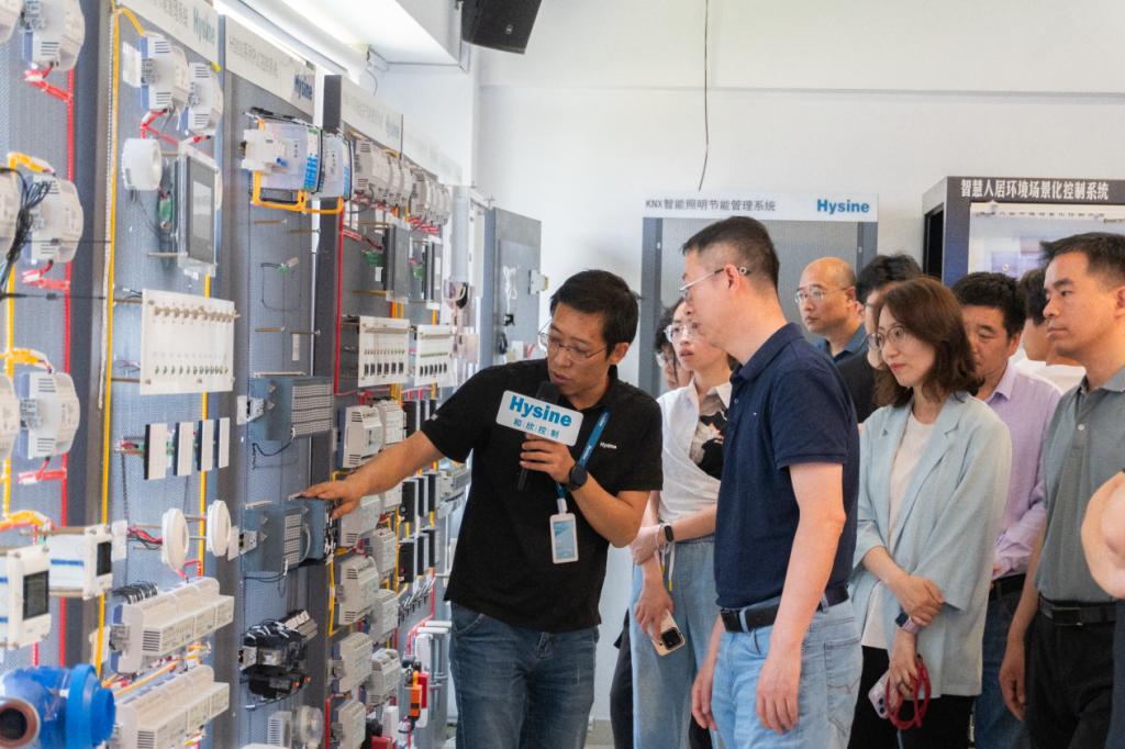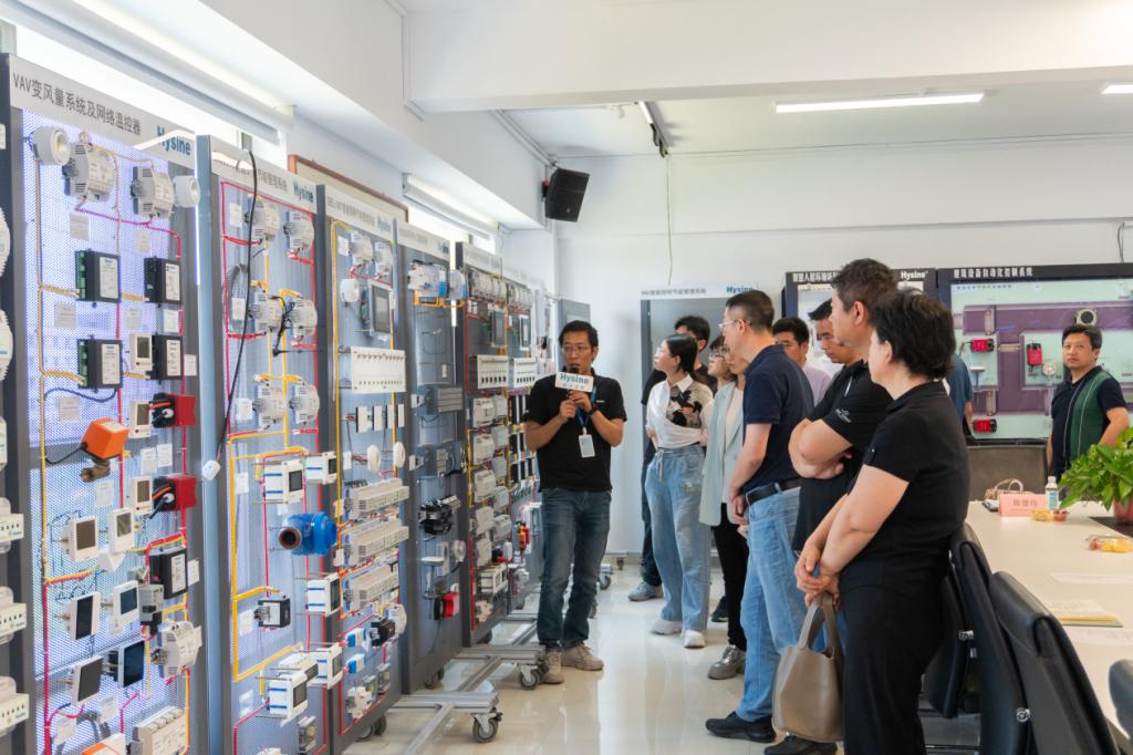 beat365师生首先参观了和欣北京研发中心、和欣能源管理云中心、建筑设备物联网、暖通机电产品展示中心。产品部经理胡羽详细介绍了建筑设备自动化实训教学系统、EMS-500楼宇自控节能管理系统、H5000PLC控制系统、智能照明系统、VAV变风量系统、能源计量系统、强弱电一体化智能控制柜(冷冻泵、冷却泵)系统的功能、特点与应用场景,展示了和欣控制自主研发、市场前景和产业前沿技术需求等现状。