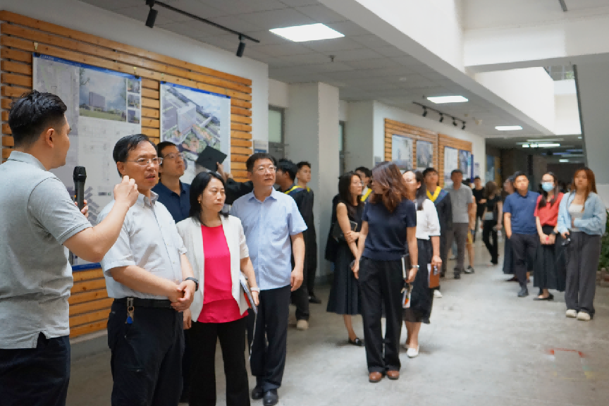 随后,与会师生一同参观毕业设计展览。本次设计展共展出建筑学、城乡规划、风景园林3个专业的57件优秀毕业设计作品。