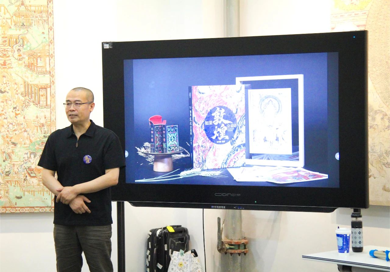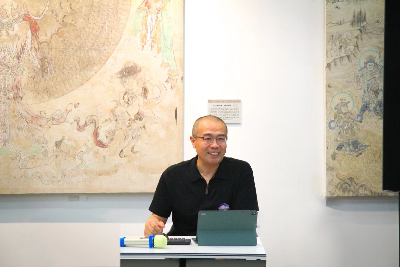 吴守峰围绕敦煌壁画中那些令人惊叹的元素——神秘的颜色、飘逸的飞天、精美的纹样、古老的乐器、曼妙的舞蹈、动人的故事、灵动的动物等章节,展开了深入浅出的讲解。