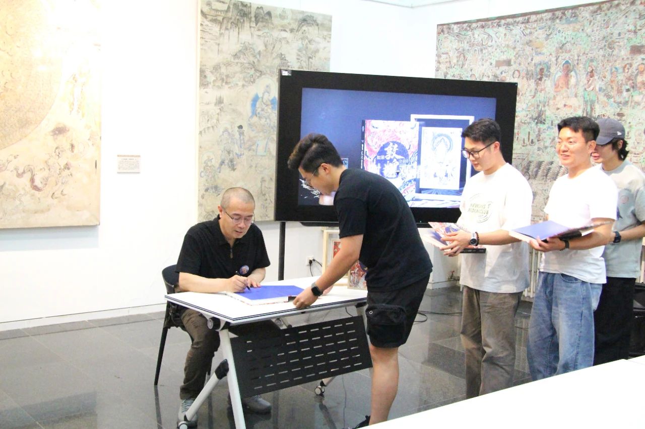 签赠环节,吴守峰将亲笔签名的新书《如果敦煌会说话》赠予在场师生,并与师生们合影留念,通过签赠为师生们打开了通往敦煌艺术圣殿的大门,带来了智慧启迪和艺术享受,点燃了青春的敦煌热情。