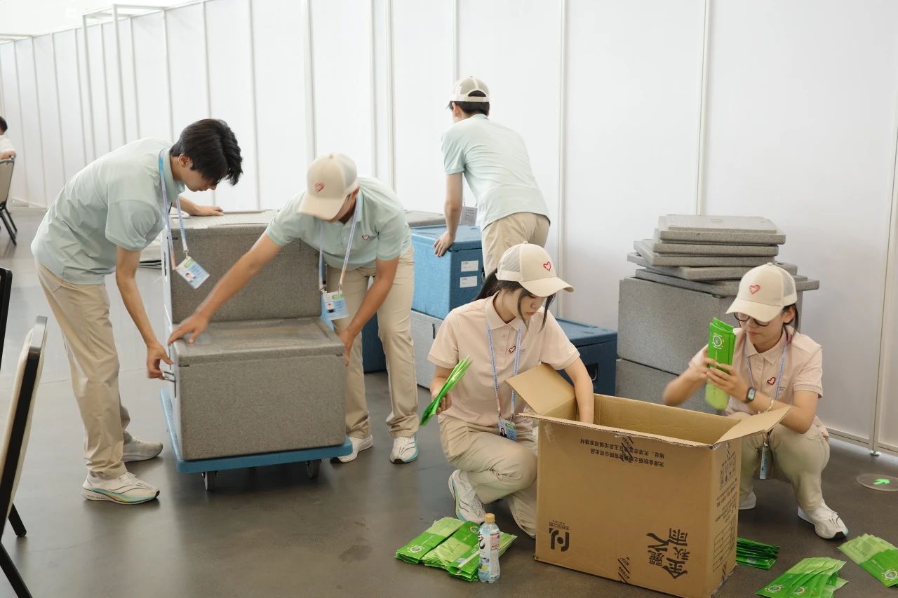在物资保障的隐形战线上,志愿者们以“毫米级服务标准”构筑起高效运转体系。在筹备办公室,志愿者们化身“证件管理专员”,精准制作并分发1000余个志愿者工作证;在药品保障屋,13200件药品被志愿者们分装打包清点,落实每个高校的精准配比和分发;在礼品饮品区,志愿者们按要求进行分装打包,执行定时循环清洁整理制度,确保礼品物资干净整洁陈列。