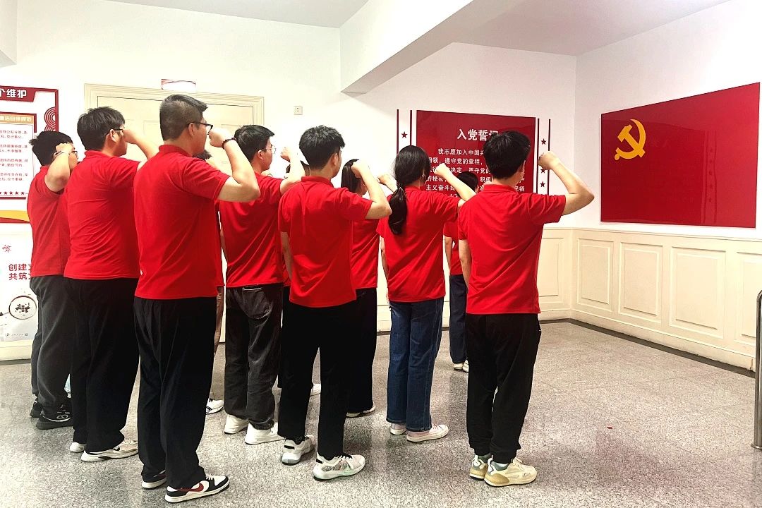 活动最后,“红旗班”学员重温入党誓词,在场馆鲜红的党旗前,学生们庄严肃立,高举右拳,齐声重温入党誓词。铿锵有力的誓言回荡在大厅,既是对入党初心的回溯,更是对青年责任担当的庄严承诺。
