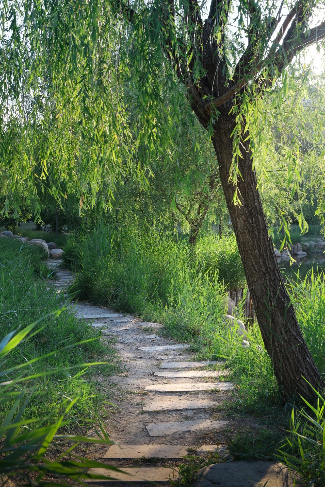 柳枝蘸着夕阳的金辉