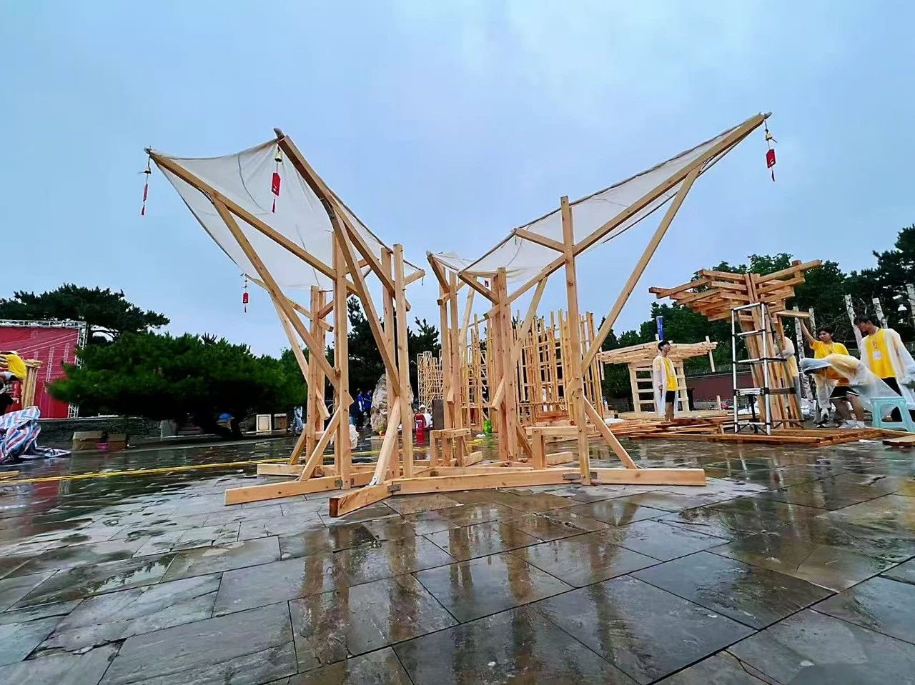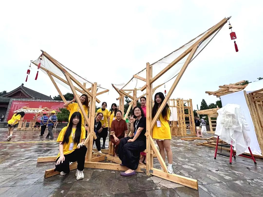 近日,由世界华人建筑师协会主办,沈阳建筑大学、中共义县委员会、义县人民政府承办的2025全国大学生“木憩”搭建设计竞赛在义县奉国寺举行。本次竞赛共吸引全国11个省市、21所高校的675名大学生参加。beat365建筑学院李小娟、王卓然老师带领的学生团队获本次搭建设计竞赛三等奖。建筑学院院长汪江华、一年级教研组组长袁海贝贝参加现场研讨和交流。