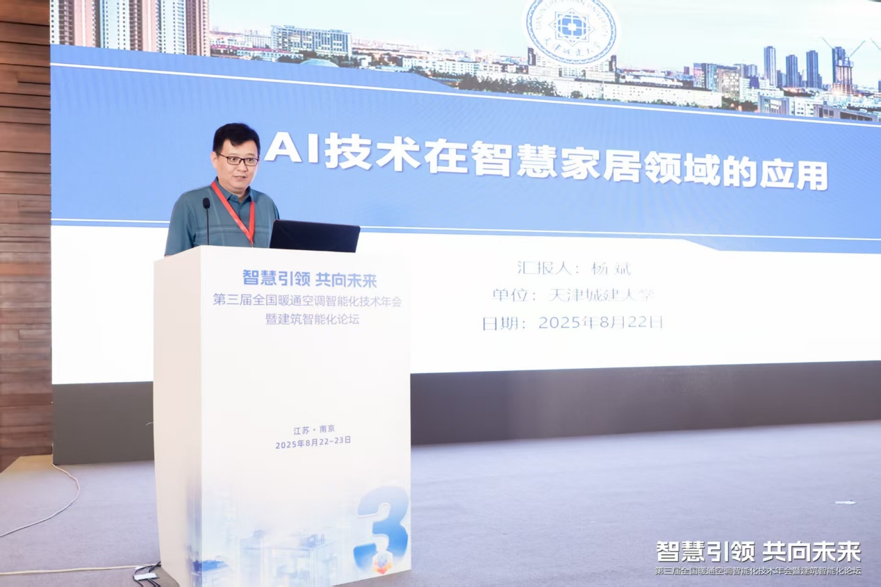 第三届全国暖通空调智能化技术年会由建科环能科技有限公司主办,来自全国的专家学者、企业代表及行业精英齐聚一堂,共同探讨智能化技术如何赋能建筑设计、空调节能以及智慧家居领域。杨斌教授在本次会议中作题为“AI技术在智能家居领域的应用”的报告,报告系统介绍了智能家居技术的最新进展。目前,智能家居通过温湿度智控、语音交互、睡眠场景优化等技术手段,正在为用户提供安全、便捷、舒适的居住环境。例如,通过高精度毫米波雷达技术,空调可以动态调节室内温湿度,实现“风向人吹”或“风避人吹”,精准满足不同人群的舒适需求。杨斌教授指出,智能家居将更加注重情感化设计,进一步结合用户的情绪状态进行智能响应,同时在数据安全保障方面,行业需加强加密和隐私保护技术,确保用户数据安全。