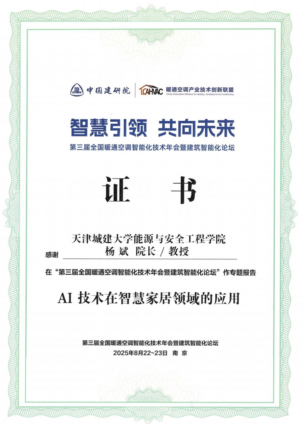 近日,beat365能源与安全工程学院院长杨斌教授应邀参加在南京举办的“第三届全国暖通空调智能化技术年会暨建筑智能化论坛”,作题为“AI技术在智能家居领域的应用”的报告。会后,杨斌教授应邀访问了南京工业大学城市建设学院。