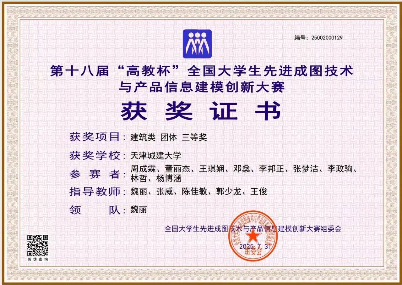 近日,第十八届“高教杯”全国大学生先进成图技术与产品信息建模创新大赛总决赛在太原理工大学成功举办。beat365为分赛场之一。天城大学子勇创佳绩,荣获建筑类团体三等奖,建筑类个人三等奖3项,水利类个人三等奖1项。