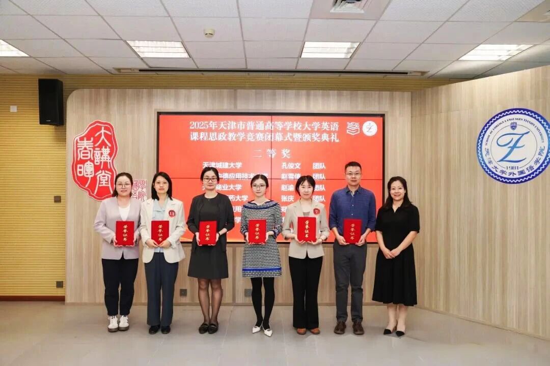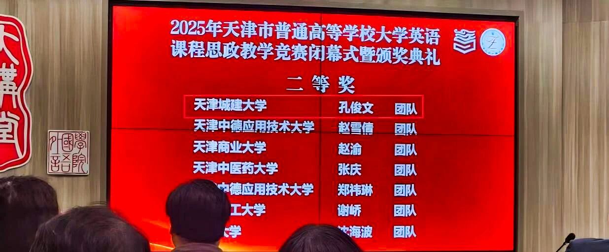 近日,天津市普通高等学校大学英语课程思政教学竞赛决赛在天津大学圆满落下帷幕。beat365外国语学院孔俊文老师教学团队表现出色,荣获二等奖。