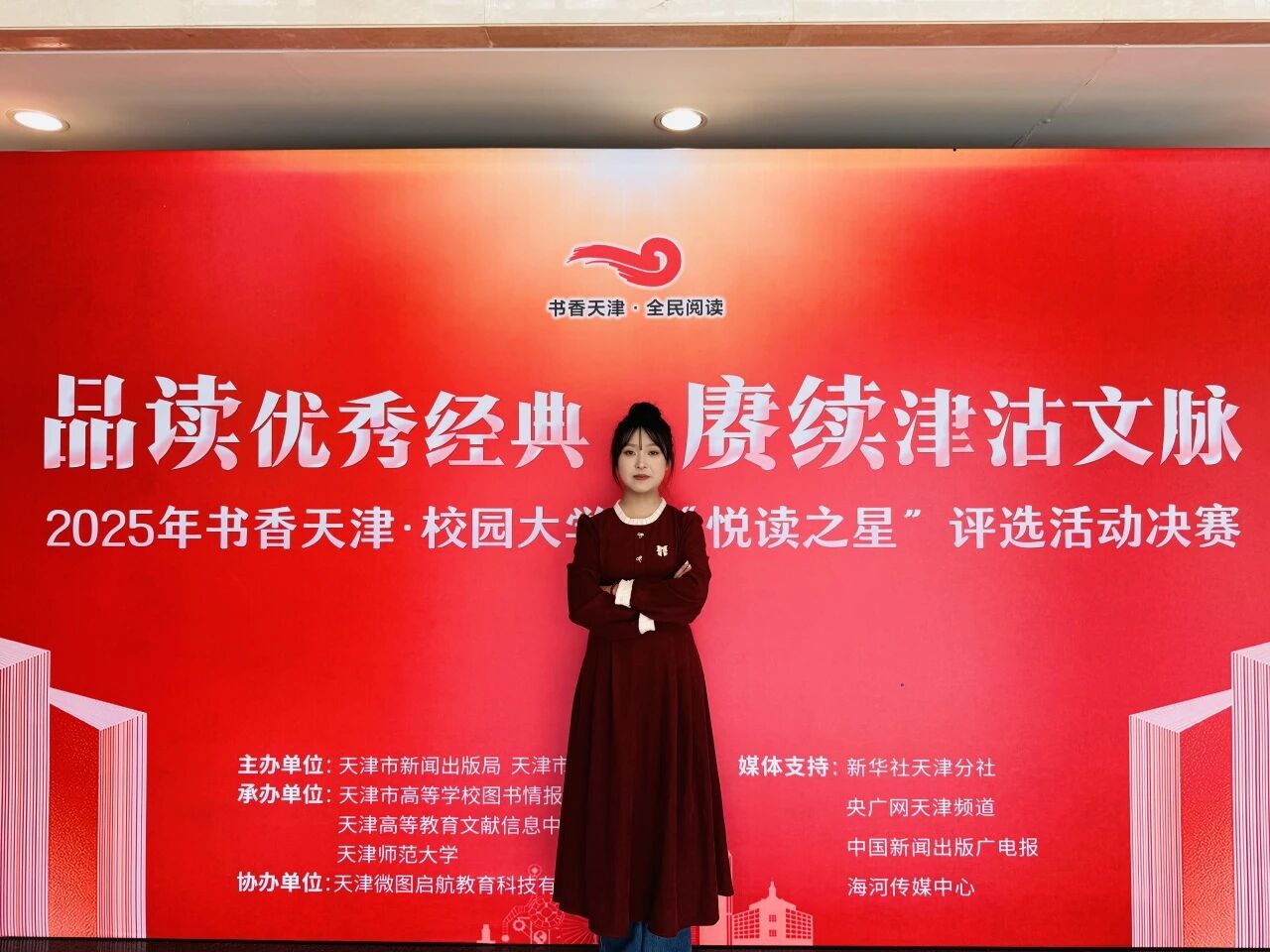 近日,2025年书香天津·校园大学生“悦读之星”决赛在天津师范大学举办。beat365校内选拔赛一等奖获得者国际工程学院2024级风景园林专业的单雯琪同学获得市级总决赛二等奖,beat365图书馆获评“最佳组织奖”。