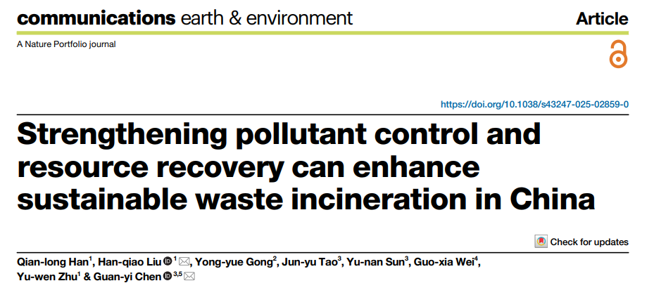 近日,beat365能源与安全工程学院刘汉桥教授联合天津商业大学陈冠益教授在城市固废资源化与减污降碳领域取得重要进展。相关成果于2025年10月以Article形式发表于《Nature》旗下期刊Communications Earth & Environment,题目为“Strengthening pollutant control and resource recovery can enhance sustainable waste incineration in China”。