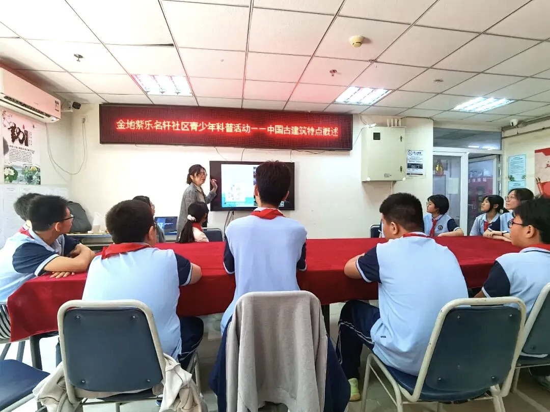 依托建筑学院课程思政教研示范分中心,积极拓展思政教育服务的内涵与形式。通过建设建筑类专业课程思政教学数据库,打造巨匠、巨制、巨作3类教学案例库,致力于将中国传统建筑文化以科普教育的方式送进社区和中学,弘扬中华优秀传统文化。例如,在支部与金地紫乐名轩社区的共建活动中,中国建筑历史课程主讲教师刘征,为天津市育才学校的初中生带来了题为“文化传承——探索古建筑之美”的思政科普教育,生动讲述中国古建筑的技艺与智慧,在学生心中播下文化自信的种子。