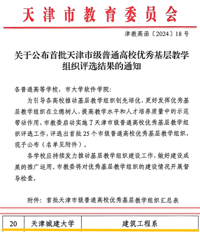 建筑工程系获评天津市首批优秀基层教学组织