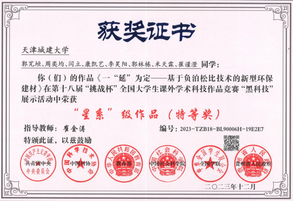 “挑战杯”全国特等奖