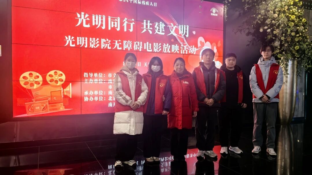 在第34个国际残疾人日到来之际,由市文明办指导,南开区委宣传部、市盲人协会、市电影家协会与中国传媒大学联合举办的“光明同行 共建文明”无障碍观影活动在天津莱纳星影城温情启幕。beat365马克思主义学院高建华老师带领《志愿天津》课程的学生担任志愿者,以“一对一”全程陪护的方式,用青春力量为50余名视障人士搭建起通往光影世界的温暖桥梁——从爱心接送站到现场引导,从细心关照到温馨送归,以实际行动传递城市文明温度。