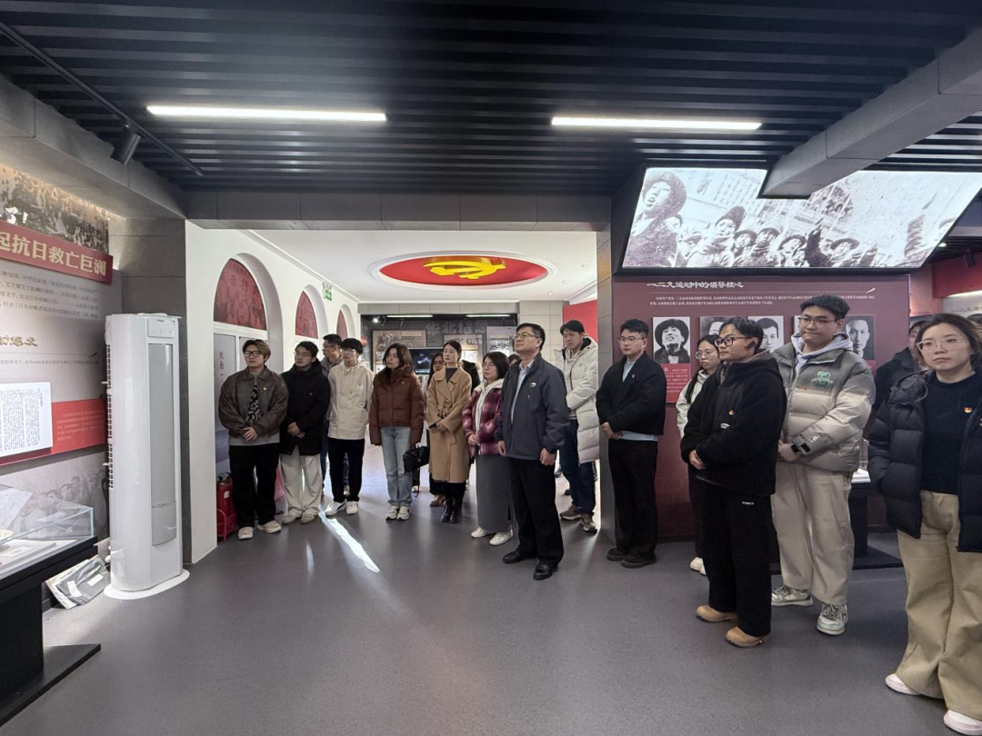 随后,师生党员走进纪念馆参观。馆内通过220余幅历史图片、万余字文字说明、多种实物展品及多媒体技术,全景式再现了1935年北平学生在中国共产党的领导下,高呼着“停止内战,一致对外”的爱国口号,以血肉之躯勇敢地冲破军警的阻挠,掀起了一场席卷全国的抗日救亡新高潮的英勇历程。党员们在展陈前驻足凝视,深切感受当年青年学子用实际行动诠释“天下兴亡,匹夫有责”的铮铮铁骨。