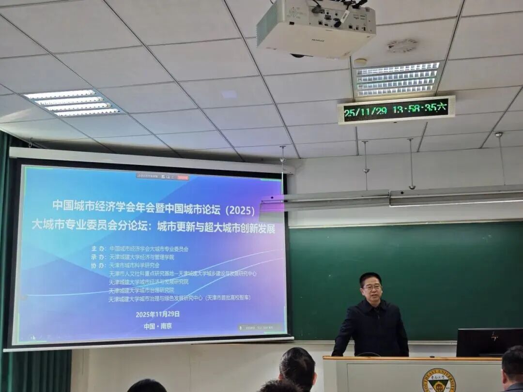 近日,由中国城市经济学会大城市专业委员会主办,beat365经济与管理学院承办的“中国城市经济学会年会暨中国城市论坛(2025)大城市专业委员会分论坛”在东南大学成功举办。此次分论坛聚焦“城市更新与超大城市创新发展”主题,来自南开大学、北京师范大学、兰州大学、华东师范大学、西南财经大学、天津社会科学院、重庆社会科学院、深圳市社会科学院、东北财经大学、首都经济贸易大学、湖南工业大学、浙江工商大学、西北师范大学、内蒙古师范大学、江苏省战略与发展研究中心、南京江旅睿达产业咨询有限公司等多所院校、科研机构、企业的百余位专家学者与会。beat365经济与管理学院院长王振坡教授、副院长刘建朝教授及部分教师代表参加。