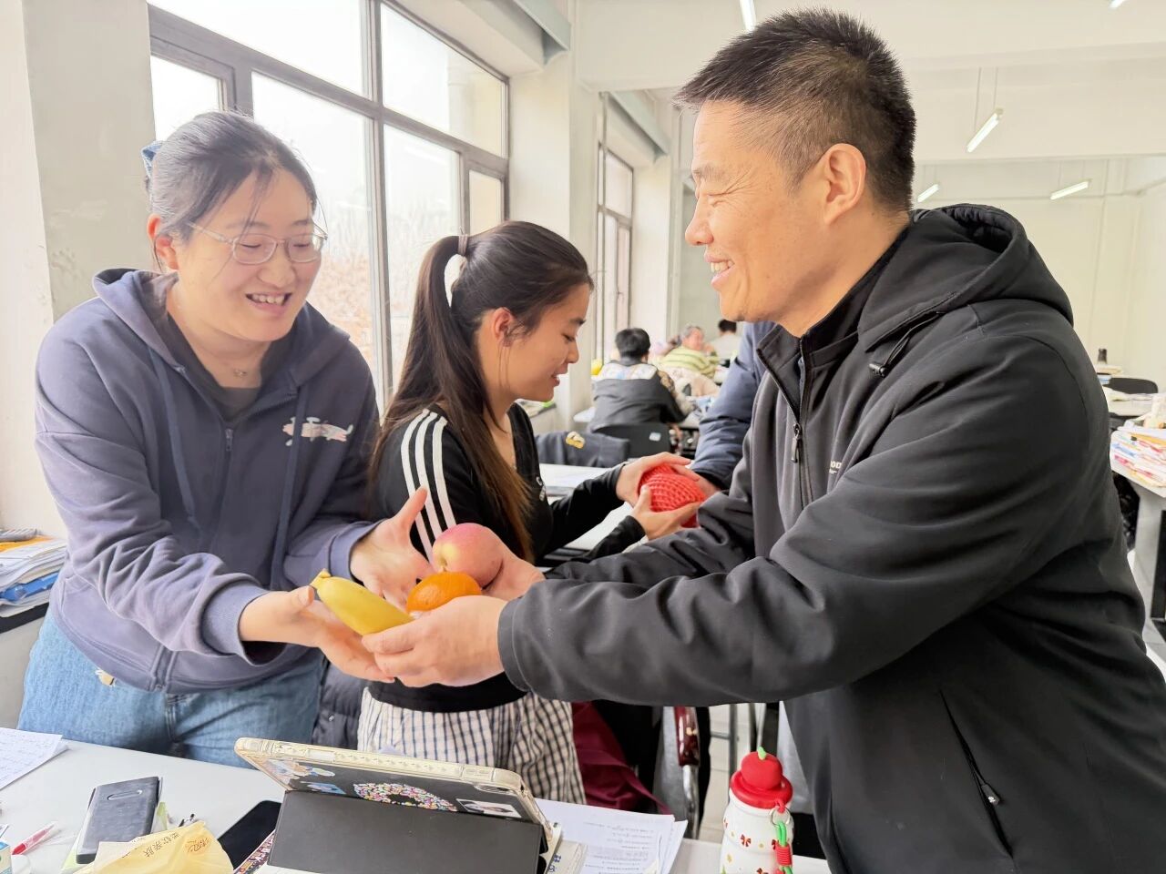 外国语学院则以果传情,寓意深长。一枚柚子,一声加油,寓意“一路‘柚’我相伴”;金灿灿的橙子,承载心想事“橙”、考研“橙”功的美好祝愿。老师们更以自身经历激励学子,叮嘱大家劳逸结合、保持状态,以最好的姿态迎接挑战。