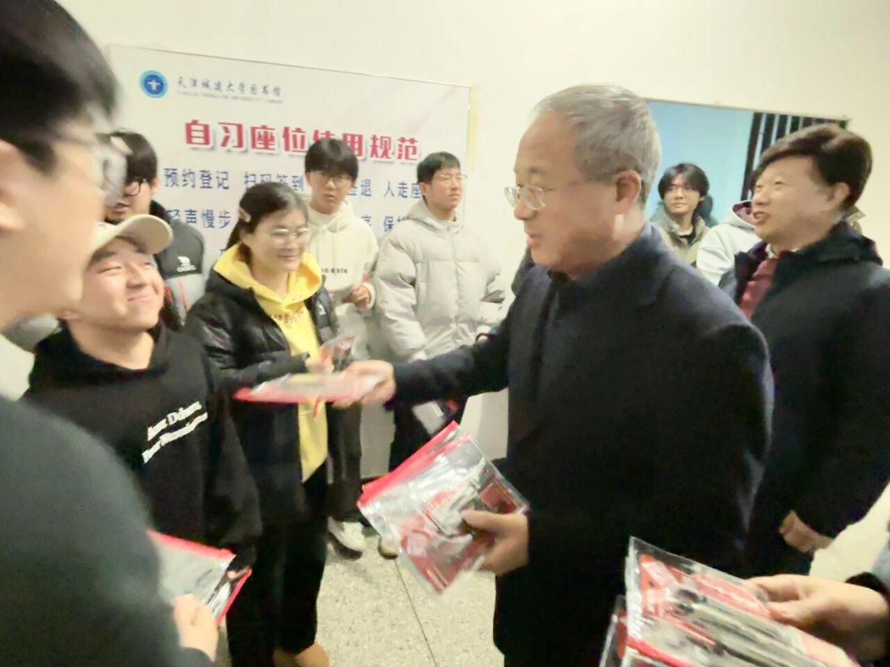 材料科学与工程学院开展“研途有你,冲刺上岸”送温暖活动。学院领导与辅导员们一同走访备考一线,将满载心意的考研“加油包”送到同学们手中,为大家加油打气,祝愿大家一战成硕、梦想成真。这份温暖的问候,不仅舒缓了紧张的备考心情,更化为鼓舞前行的力量。