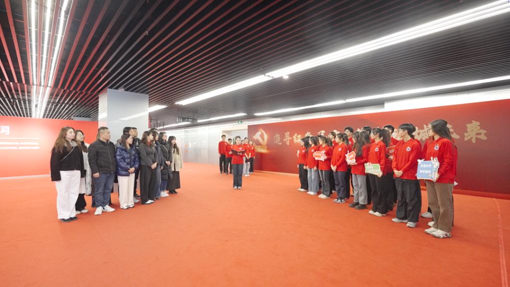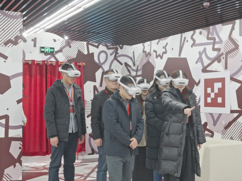 活动伊始,全体学员在展厅内通过大空间VR技术,沉浸式体验了数字还原的中共一大场景。在跨越时空的光影交织中,学员们“亲临”建党初心的萌发之地,深刻感受那段开天辟地的历史时刻所蕴含的信仰力量。从石库门到天安门,从建党伟业到复兴征程,虚拟与现实的交融让红色历史变得可感可知,为学员们上了一堂生动而深刻的“初心第一课”。