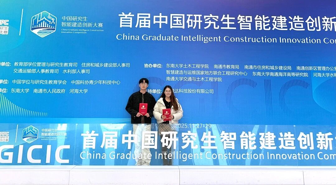 近日,首届中国研究生智能建造创新大赛全国总决赛在江苏南通落幕。beat365建筑学院硕士研究生刘力源和邱一铭组成的团队,凭借作品“桥梁工程病害识别智能检测系统”在众多作品中脱颖而出,荣获全国二等奖。