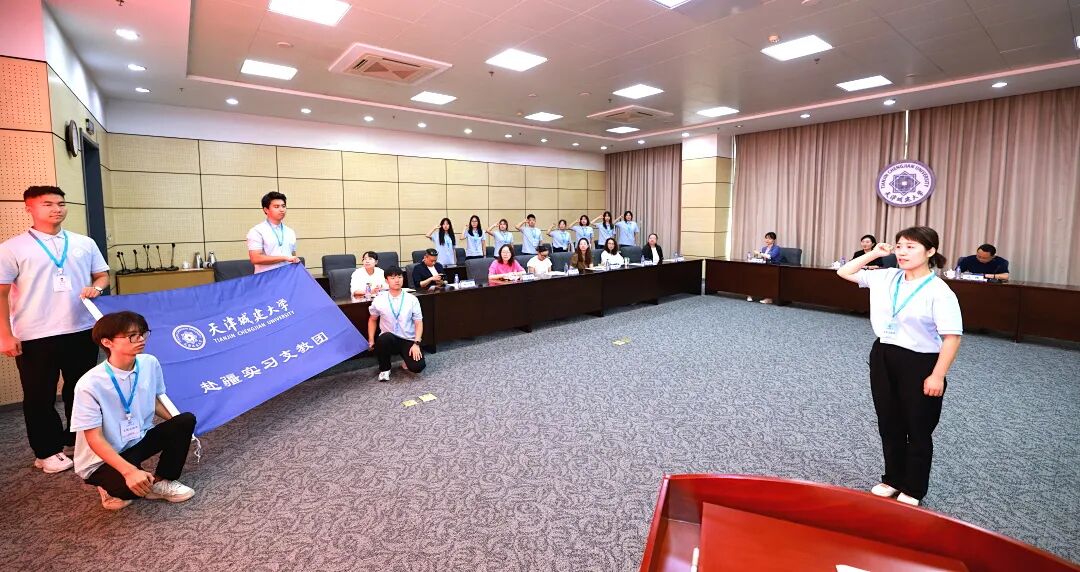 9月15日,学校隆重举行2025年赴新疆和田实习支教团出征仪式。校党委副书记王罡授旗,支教团领队陈静媛郑重接过团旗。全体支教团师生面对团旗庄严宣誓:“高举旗帜,甘于奉献;牢记使命,勇挑重担;重德重能 善学善建;虚心学习,躬身实践;献身边疆,圆梦和田;永葆家国情怀,谱写支教新篇。”铿锵誓言,掷地有声,展现了天城大青年投身边疆、教育报国的坚定决心。出征前,学校组织了系统的行前培训,为支教之旅奠定了坚实的思想、业务和安全基础。